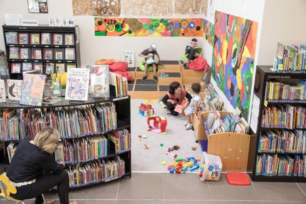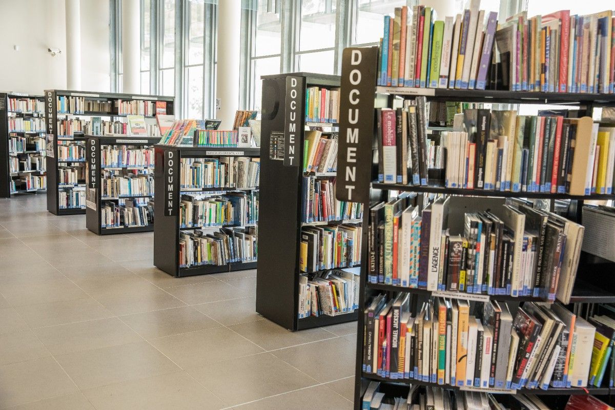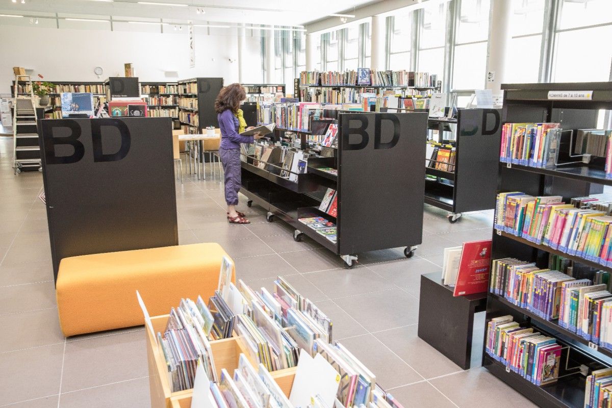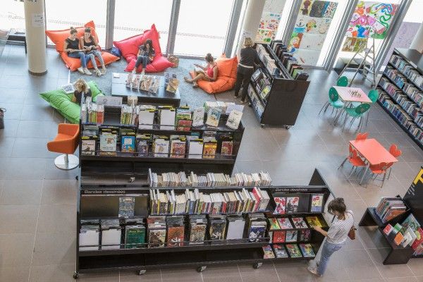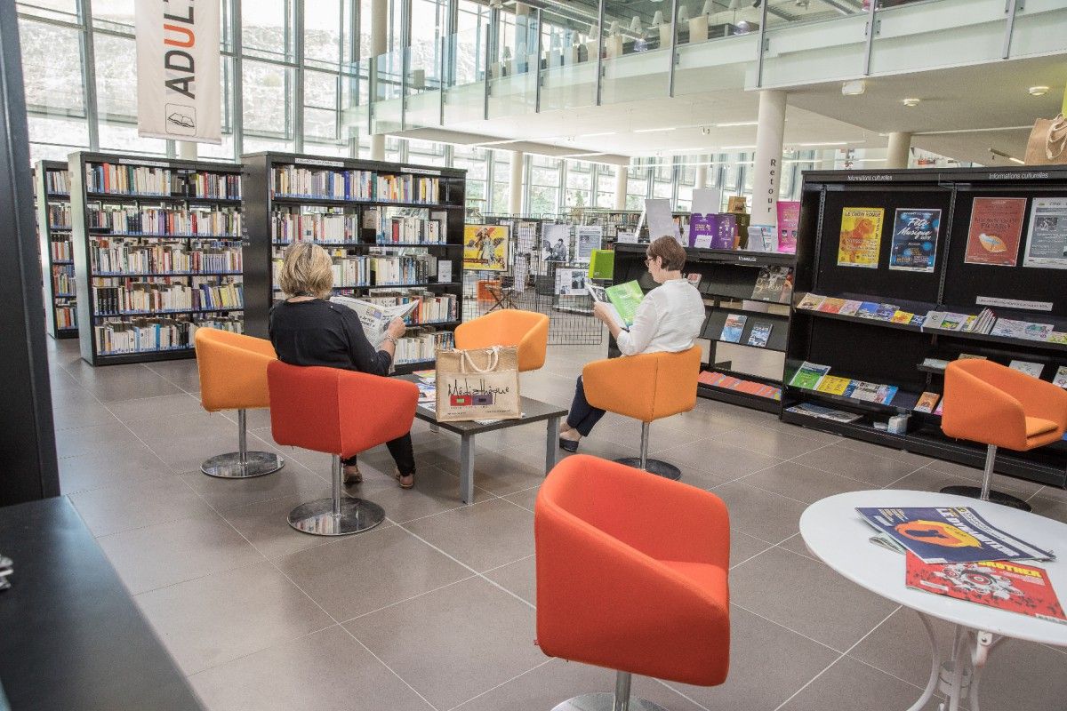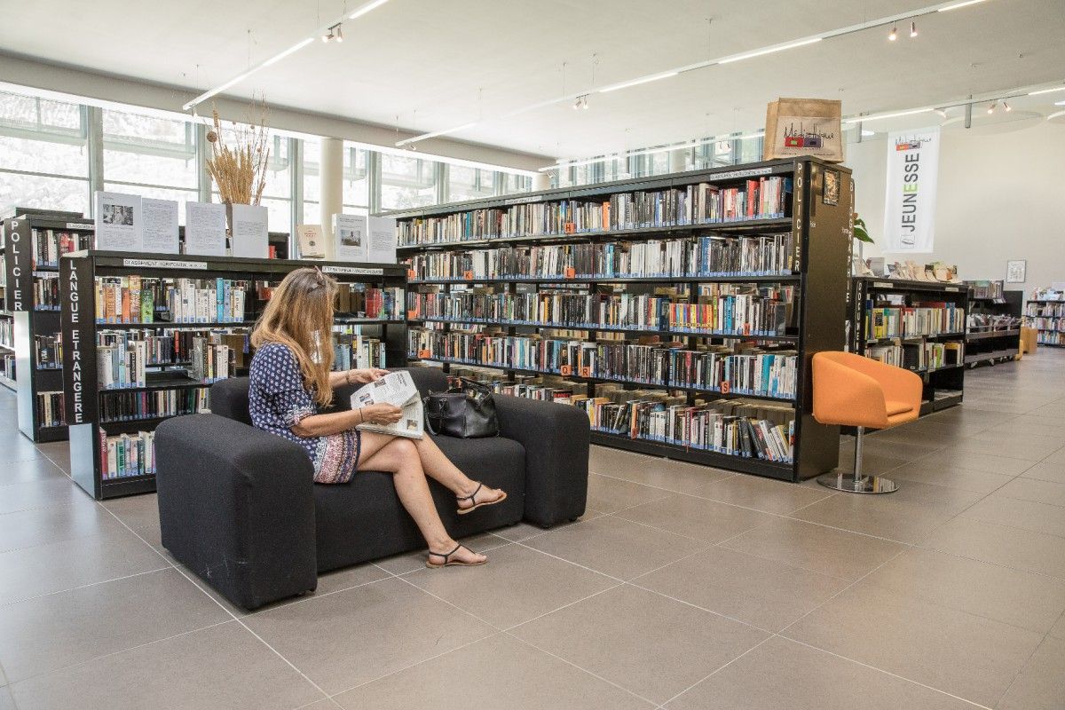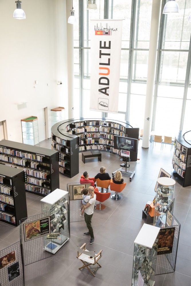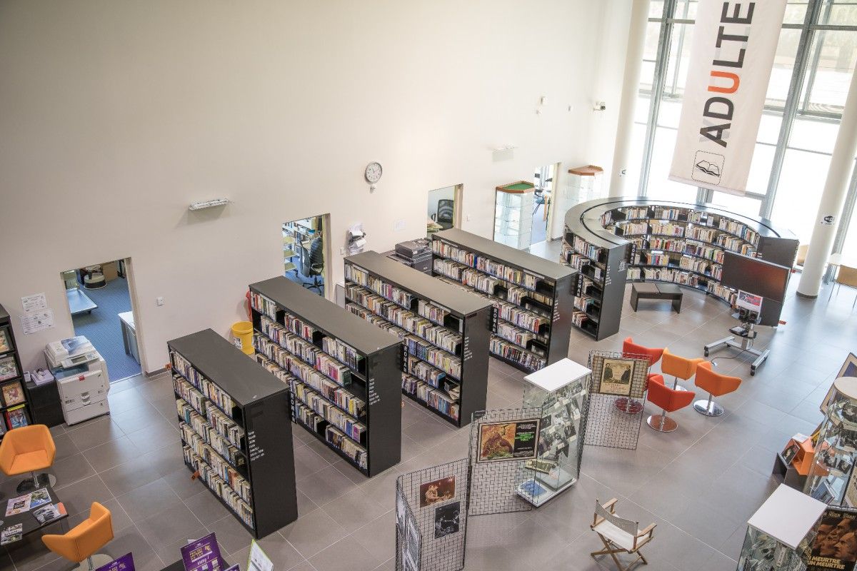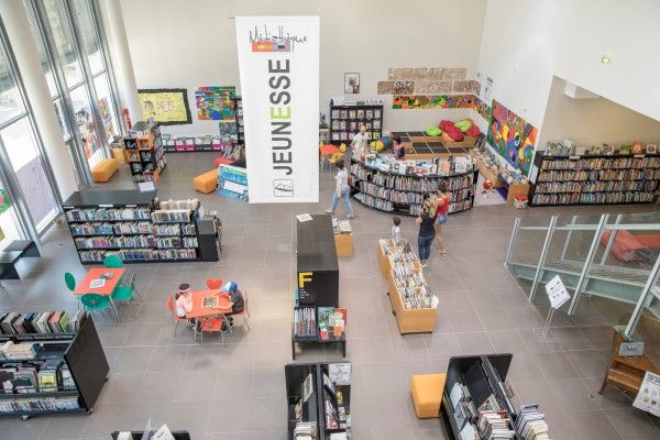 Lieu de vie, lumineux et convivial, la médiathèque bénéficie de 1200 m2 climatisés, aménagés en trois secteurs :