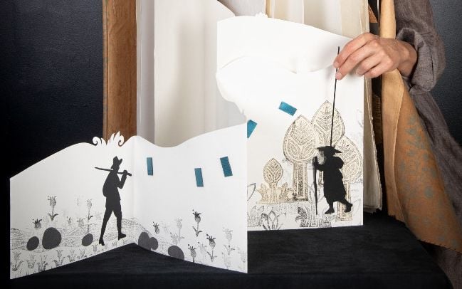 Une conteuse, un colporteur, un imprimeur… et un Petit Chaperon Rouge revisité au fil des mots, des papiers pliés.